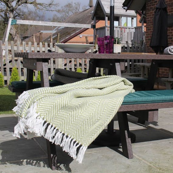 - Throws have the look and feel of wool but are manufactured from 100% recycled plastic bottles